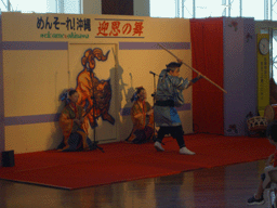 空港のイベント広場では「めんそーれ沖縄 Welcome」という横断幕が張ってあり、エイサーなど謝恩の舞いを披露していました。